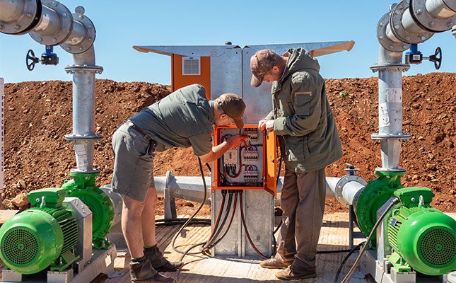 “We pumped water from sandpits in the middle of the river up to a dam and from there it’s transported to the pivots. The challenge was to do this by utilising the least possible kilowatts, as excessive use is expensive.”