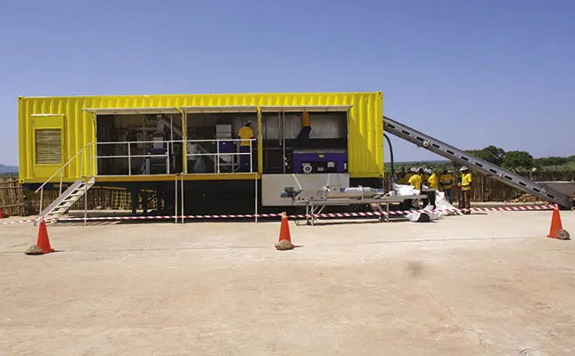 The patented Autonomous Mobile Processing Unit (AMPU) developed by Dadtco is an integrated mobile cassava root processing plant housed in a modified 13m container, and with a self-contained power supply. It can be moved to the different areas where the cassava is produced and normally stays at a particular site for three to four months before moving to the next village.