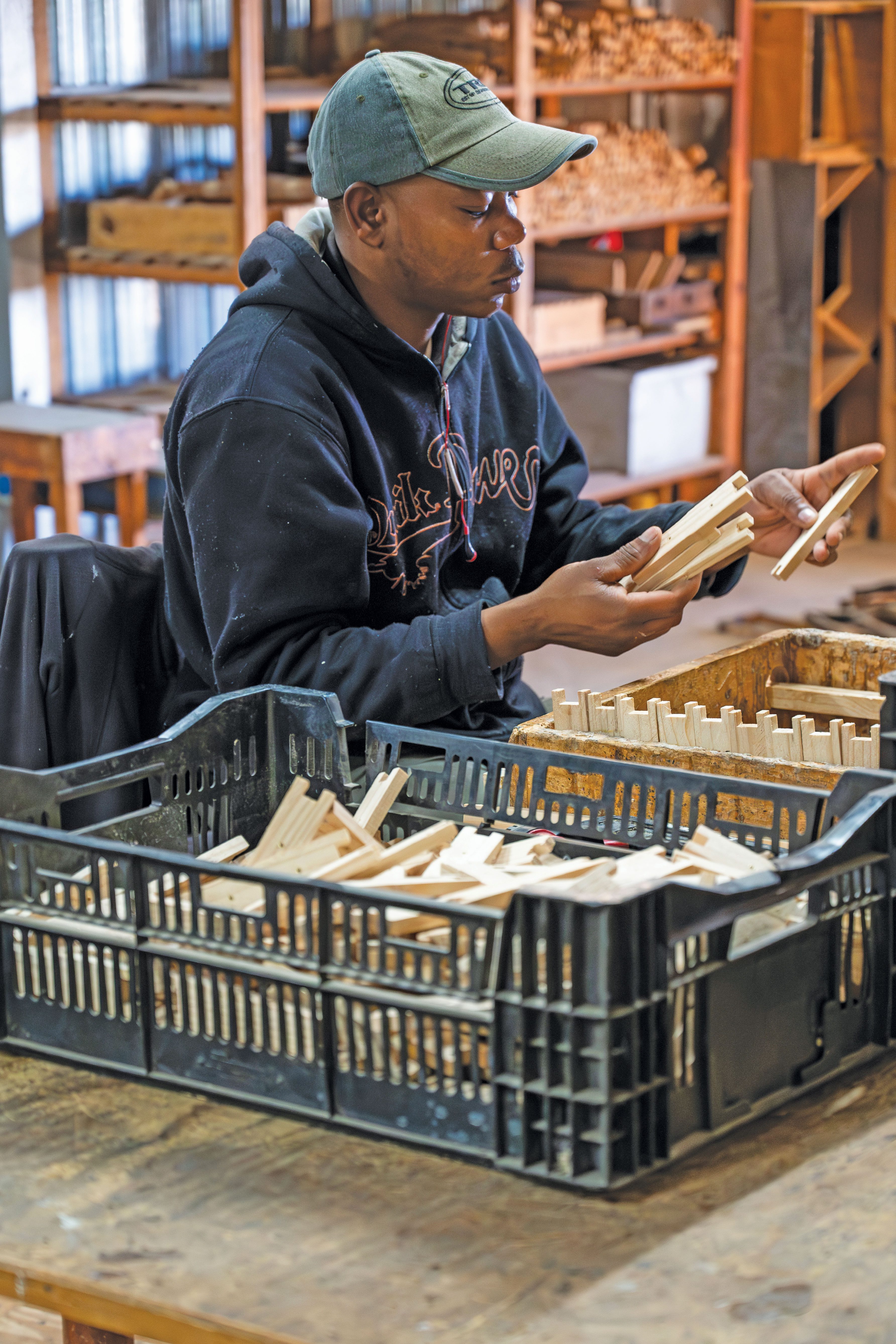 The Ubusi staff build specialised Langstroth beehives, catch boxes, and brood chambers.