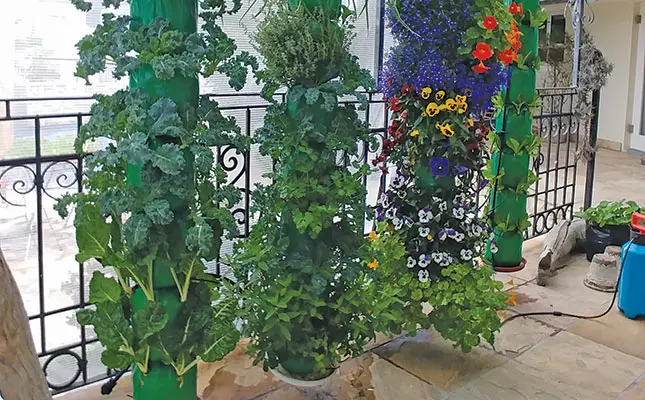 “Four to eight modules interlock to form the column. Each module is filled with 4,5ℓ of sphagnum peat moss and green fibre pre-enriched with a little fertiliser to get the plants started,” Dick explains. This growing medium has high water-retention and can last for as long as two years.
