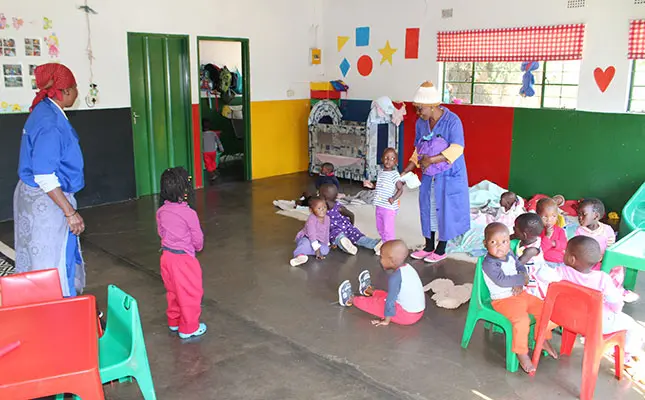 The crèche is also open to the surrounding farms’ children, and parents pay only R120/month.