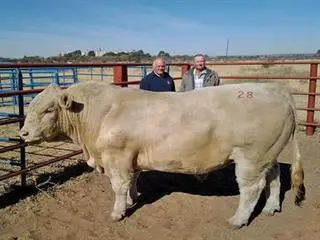 Schweizer-Reneke – Willie and Henda Hallat’s Grejama Charolais Retirement Sale was held on 9 July. Hendrik du Plessis bought the highest-priced Charolais bull for R110 000. Bulls achieved an average of R33 000, cows R19 340, and heifers R14 431. The sale was conducted by André Kock & Son, with Johan van der Nest as the auctioneer.