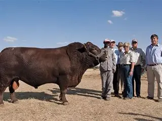 A South African record price was achieved for a cow sold for R55 000 by Rhys Evans Group to Leeuwpan 58/Rohan Meintjies of Rant en Dal. Four cows were sold at an average of R33 250. The most expensive cow and calf was sold for R32 000 by Rhys Evans Group to Wood Basket (Pty) Ltd/Hogart Gevers of Vryheid. Six cows and calves were sold at an average price of R21 333.