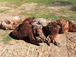 Evidence at the scene revealed that after struggling to herd the animals away, the stock thieves spitefully beat each alpaca to death with a steel pipe.