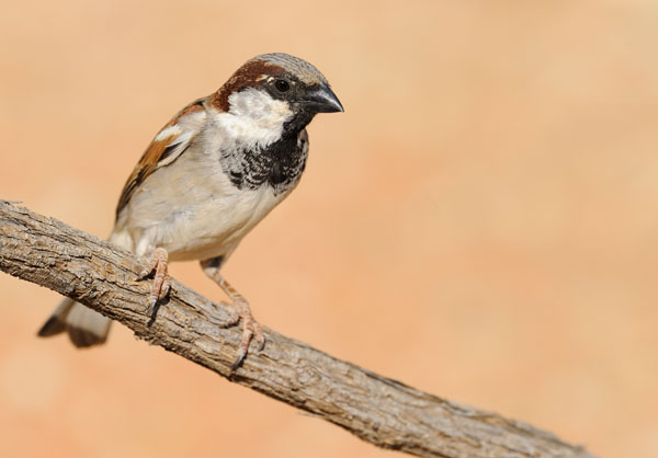| Name: House Sparrow (Passer Domesticus) Description: upperparts are reddish-brown with a grey rump and black bib. Habitat: urban and surburban areas, rural homesteads. Voice: A soft ‘chirrup’ sound |