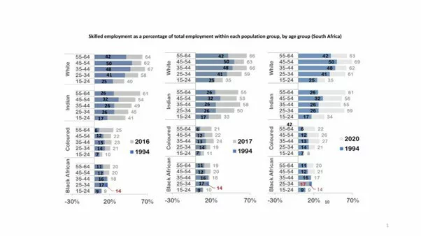 As a result, the same kind of trend can be seen with regard to skilled work opportunities. According to Lehohla, a 2020 survey revealed a substantial difference in skilled workers and work opportunities between white and Indian/Asian populations, and coloured and black populations.