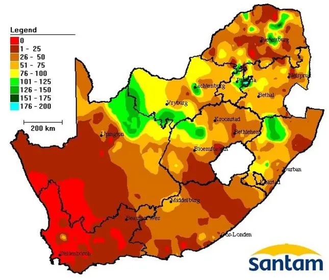 Areas south of Bloemfontein received between 1mm and 25mm while showers of up to 150mm were received in the north-eastern parts of the Free State province.