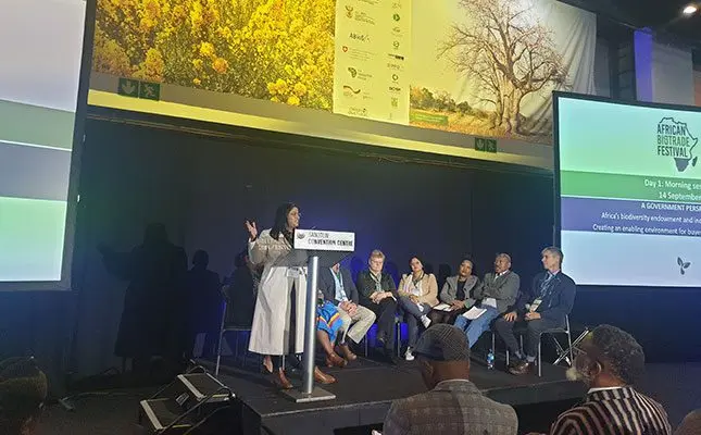 Preshanthie Naicker-Manick, project manager at the United Nations Development Programme, led an insightful panel discussion about the biotrade sector. Various governmental stakeholders discussed sustainable supply, innovation, policy and legislation, and market access in the trade sector in South Africa.