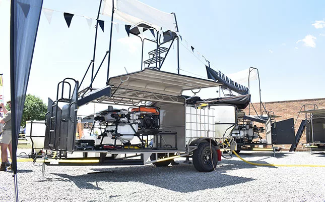 A custom-built drone trailer manufactured by Nick Trailers in Coligny, North West, also drew attention. The trailer carries all necessary support equipment, including water and spray tanks, and a generator for efficient in-field drone operations.