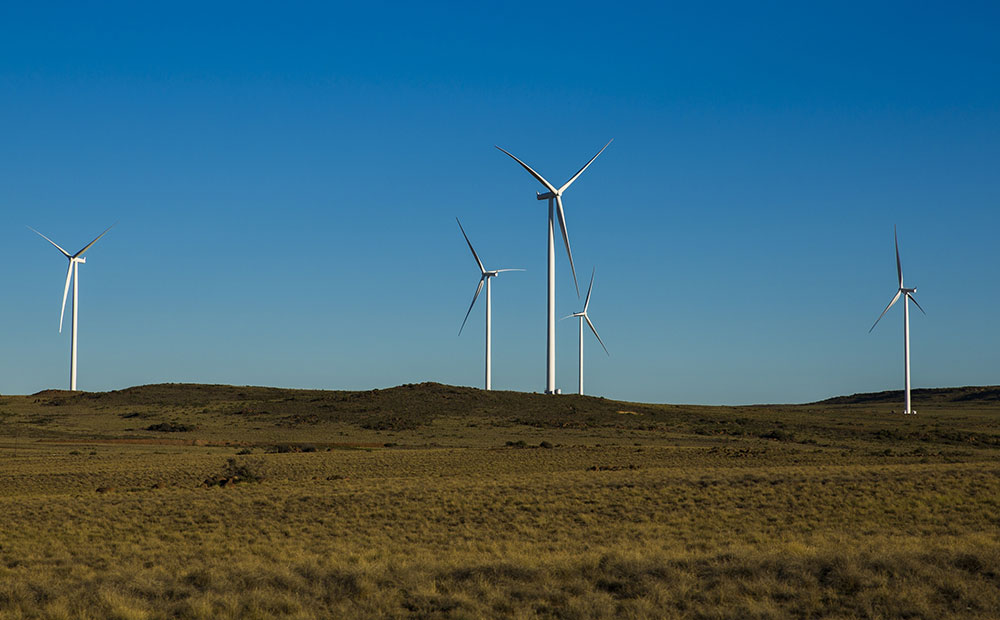 The Loeriesfontein and Khobab wind farms comprise a total of 122 wind turbines, each 99m tall, spread over 6 653ha. Each farm has the capacity to generate 140 megawatts of electricity.