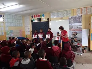 Erasmus teaches learners in the Warm Bokkeveld about the dangerous of swimming in dams and swimming without adult supervision, as well as what to do when they or a friend get in trouble in the water.