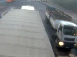 The truck is white with a blue tailgate. “It looks as if the truck is actually built for mass grain transportation and the cattle rails are not of a high quality,” said Clack.