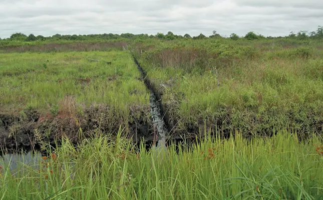 Peatlands store a huge quantity of carbon. According to the WRI, draining one hectare of tropical peat is equivalent to burning more than 22 000ℓ of petrol.
