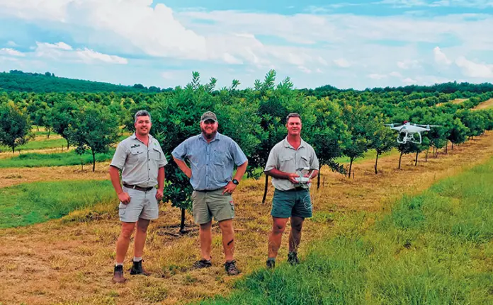 Martin works with Jaco Prinsloo, a consultant at Loskop ICT, a fertiliser company based in Marble Hall, Limpopo, to pair drone technology with orchard-specific fertilisation and soil-specific moisture management, making production more precise than ever.