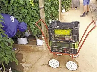 If growers do not have rail pipe trolleys, they can make their own by securing two plastic crates on a lightweight surface and attaching rubber wheels. “This will speed up harvesting significantly, as pickers would no longer have to carry buckets between rows and outside. It’s all about thinking of clever solutions to get the job done quickly,” says Stolker.