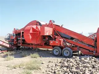 The quality of separation can be adjusted from the tractor to suit the composition of the material being harvested. This is done by altering the air-flow rate and the inclination and frequency of the conveyor base. In addition to a high output and a reduction in manual post-sorting work, the AirSep means that areas can now be used for potato-growing that would otherwise require cost-intensive earth separation before planting.