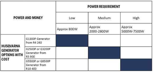 It’s times like these that many (if not all) of us consider buying a generator, but not many of us actually follow through. Johan Kruger, national sales manager for Husqvarna South Africa, believes that people often opt to stay in the dark because of the perceived costs of a generator, or they find the thought of choosing and installing one too overwhelming.