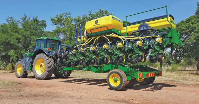 To prove this approach, they equipped a 2013-model John Deere 2113 CCS eight-row, 76cm no-till planter with Precision Planting and Agromac technology. The various components fitted to the planter included: