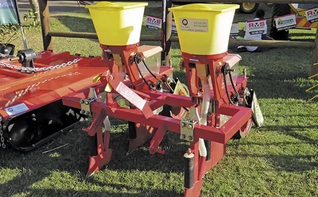 RY Agri, based in Middelburg, Gauteng, imports this two-row planter (above), with row widths ranging from 500mm to 900mm. Seed and fertiliser tubes have separate coulters, and the fertiliser can be applied alongside or below the seed if required.