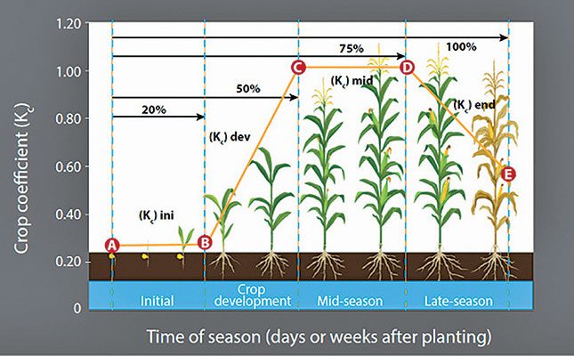 To determine the crop’s water requirement, take the ETo and multiply it by Kc.