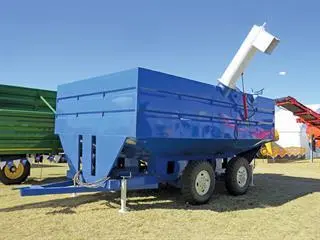7. EmCasa Peso 10 000 de-bulking wagon: This has a capacity of 10,5m³ and a maximum weight of 11 500kg. Formerly imported from South America, it is now entirely manufactured at Ottosdal in South Africa. It runs on a walking beam tandem axle fitted with four 400/60/15.5 tyres and can be used as a combine chaser bin or as a feeder wagon when planting.