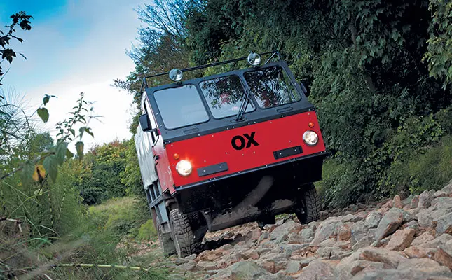 In any vehicle, travelling over rough ground depends less upon the number of driven wheels than the balance and ground clearance. The OX is driven by two wheels, which allows for a much higher clearance without the need for larger and more expensive wheels and tyres.