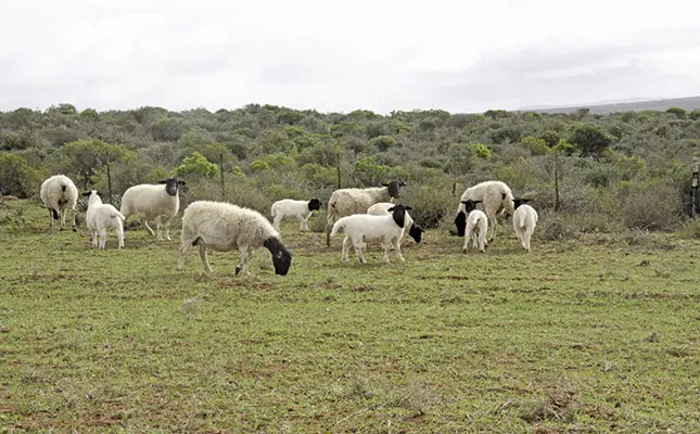 Although the recommended stocking is 6ha/SAU, he stocks at a rate of 10ha/SAU to conserve the veld and ensure enough grazing for his animals. His flock of 800 ewes consists of 400 stud White Dorpers, 150 stud Dorpers and 250 commercial ewes.