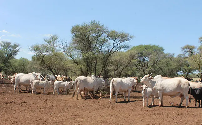 Since 2016, the commercial herd has dropped to 300 cattle, or 100 calves, four bulls and 196 females. The cattle were previously kept in 12 camps, but because of the invasions, he had to reduce his system to four camps, grazed on a rotational basis.