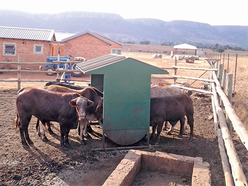 He says that although feedlotting comes with a certain amount of risk, it can also be profitable. And it has two other distinct advantages: it can be established on a small area, and there is no need for arable land. All that’s required is a gently sloping site with a good, secure water supply. And fortunately, Jerry has two boreholes with a minimum capacity of 4 000l/ hour.