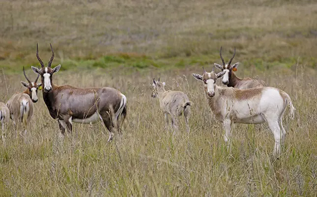 White Saddleback blesbok, an artificially selected colour variation of the hardy indigenous antelope species Damaliscus dorcas, enable farmers to diversify their farming operation at negligible maintenance costs. Dr Donnie van Zyl from Amersfoort was once told that a blesbok is the donkey of game, and that no one would be interested in White Saddleback blesbok.