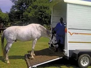 Your horse must see the horsebox as a moving stable. It should be comfortable and contain food. Park the horsebox next to a wall or in a passage. Make sure the entrance looks inviting. It’s essential that the horsebox doesn’t rock when the horse puts its feet on the ramp. This will frighten it. Also, never tug on the head collar. The greedy horse with a pony-like temperament will follow you in for food. The more nervous horse will likely stop at the bottom of the ramp.