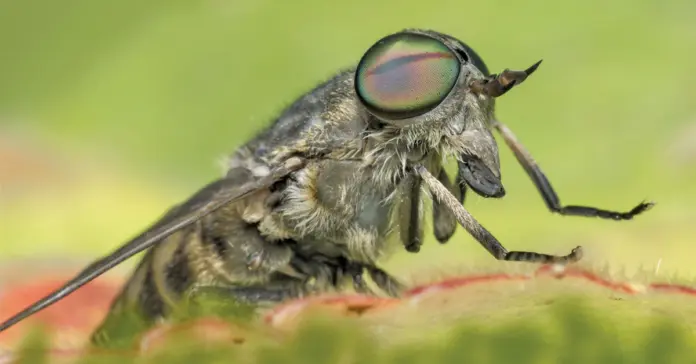 The horse fly, sometimes called the gadfly, is much larger than the stable fly. Almost as big as a small wasp, it has a longer, darker body and flies much faster. The horse fly (Tabanus spp) is a member of the Tabanid family and only the female sucks blood from horses, humans, livestock and wildlife.