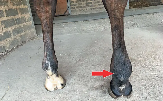 Although the horse will not be particularly lame in the beginning, severe lameness will present within days if the horse is not treated. Cuts at the rear of the pastern have a poor prognosis, as infections in the synovial fluid are difficult to treat.