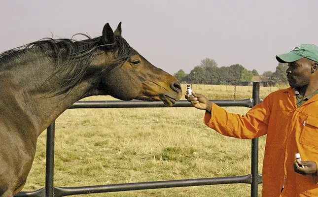 A horse has a very well-developed sense of smell and knows how to smell essential oils correctly – first with one nostril, then, if it is ‘interested’, with both nostrils. If the aroma offers no therapeutic value, the horse will turn away.