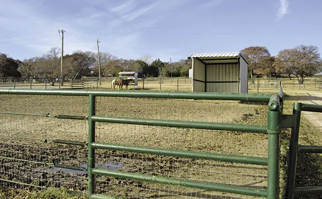 They should also be fairly close to the stables so that it is easier to take the horses out and remove manure every three days. If possible, provide a shaded area to protect the horses from sun, rain and hail. Avoid planting trees for this purpose if lightning is common in the area. Horses sheltering under a tree can be killed if the tree is struck.