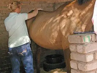I palpitate the body and look for soreness, tight muscles and areas of restricted motion in the neck, back and pelvis. Joints with restricted motion are usually adjusted by applying hand pressure directly to the area in quick, firm thrusts. This type of treatment will not reverse existing damage, but I find that it can help to prevent further damage and make your horse feel more comfortable.