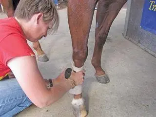 In the past 10 years or so, a self-adhesive elastic bandage called Vetwrap has come into vogue. Although this is excellent for securing wound dressings and can be used to keep a polo wrap in place, it is waterproof and does not allow the skin to breathe. Beware too of wrapping it on too tightly; this is easy to do as the material is very stretchy. Unwrap it completely and apply it without pulling it tight.