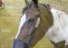 The height is measured using a measuring stick with a spirit level in the cross arm. The stick is placed with the bottom end on the ground, a few centimetres to the side of the horse’s leg, just behind the heels (as seen on the right). The cross arm is gently lowered until it touches the highest point of the withers, then gently angled back and forth until the spirit level bubble is centred. This should allow you to measure the horse in both hands and centimetres, as both are marked on a standard measuring stick.