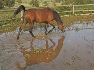 Despite habituation during ground work, a horse might still spook when it encounters a real stream or muddy patch for the first time. This can be dangerous as the horse can unseat you if it wheels away, bucks or rears.