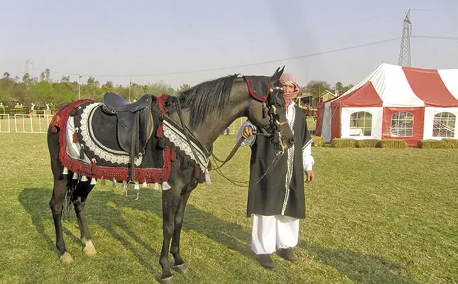 Positive reinforcement works well with Arabians and soothing words or carrots can help the horse to accept a costume without panicking. It should be remembered that, although an Arabian carries its tail high and snorts at every strange sound, it was originally a war horse that could be ridden into battle. Even today, the traditional Arabian horse is used for hunting and falconry in the Middle East.