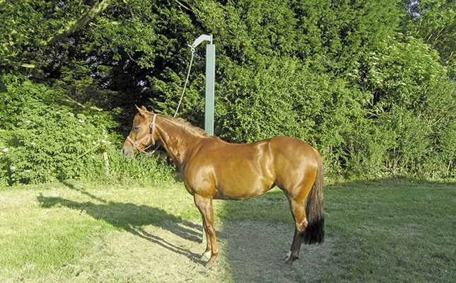 refuse to stand still. An hour or two on the pole settles this behaviour. The pole is also useful for drying off horses after washing, as they cannot roll while wet. They also receive sufficient exercise to avoid getting cold as the water evaporates.
