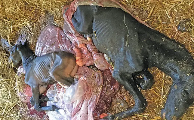 Sometimes one foal is aborted and the other remains in-utero but dies, resulting in a life-threatening infection.