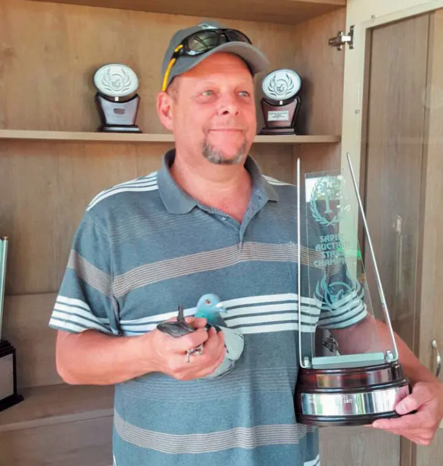 Etienne 4 (Etienne van der Walt) flew away from rest of the field at 1 194m/min, seven minutes ahead, but was part of the reserve pigeons in his team and not activated. The official winner was Charl 4 (Charl Stander) at 1 174m/ min. Second: Diamond Crown (Poggenpoel Lofts). Third: Wild Kosie’s Fire (Wildboys).