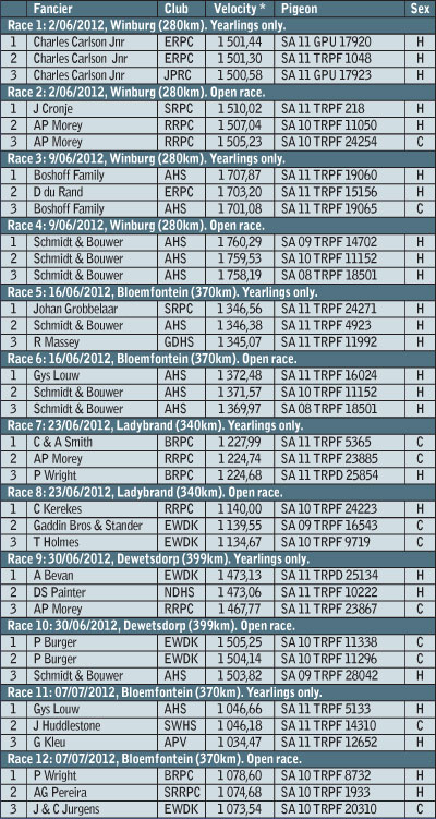 Alan Bevan, chairperson of Edenvale Racing Pigeon Club (EWDK), scored the club’s first federation win for the 2012 season in the yearling race, while fellow club member Pieter Burger went on to clinch the first and second positions in the open race.