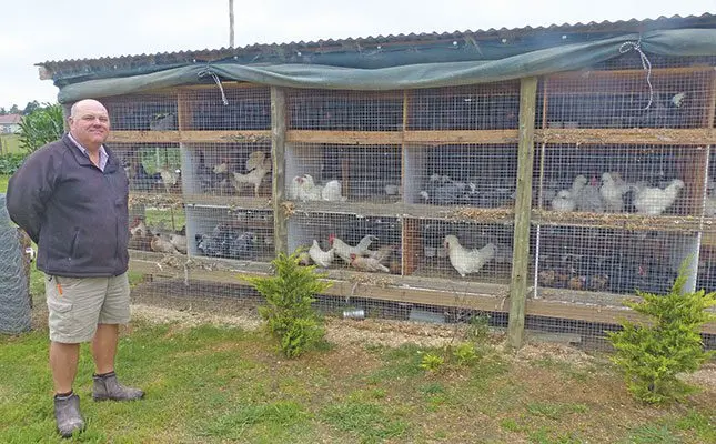 Having over the years relocated numerous times, Du Preez knows exactly what he wants from chicken enclosures. He says all chickens must be housed under a roof and they are never allowed out during wet weather. Walkways between enclosures are always concreted, and effective drainage measures ensure mud-free dry spaces in which to manage the chickens.