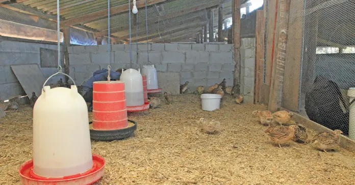 Quails are quite skittish, and often fly into things when they’re scared or anxious, so the roofs of the production units should be high enough to avoid them injuring themselves.