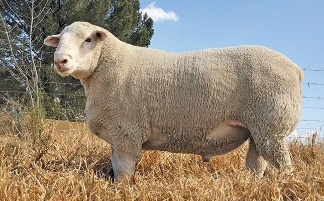 Spiekeries is a product of line breeding and, according to Barnard, is “one in a million” and “the ideal package”. This ram is extraordinarily robust, with a very strong head, well-developed legs, a perfect topline, and an unequalled hind quarter. Barnard says the animal has a near-perfect build and incomparable breeding values.