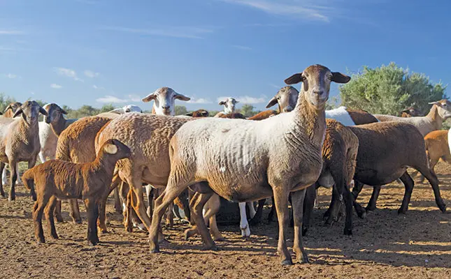 The Damara is a tough sheep, recognisable by its long, slender form and thick, fat tail. It is known for its ability to survive in tough environments such as Namibia and the Karoo.