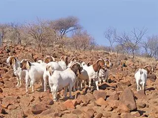 “Dry ewes on the veld get 100g lucerne pellets or maize every afternoon,” says Sarel. “Boer Goats are creatures of habit and return to the feeding points in the afternoon. This helps us keep track of them and stops them from fence-crawling.”