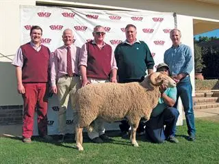 The highest-priced ram was sold to Jan Walters (Leliefontein Boerdery) of Malmesbury for R13 500. The sale was conducted by BKB Western Cape, with Appie Maritz as the auctioneer.